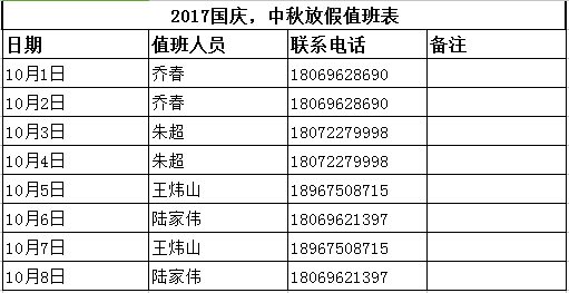 下附值班人員名單及電話