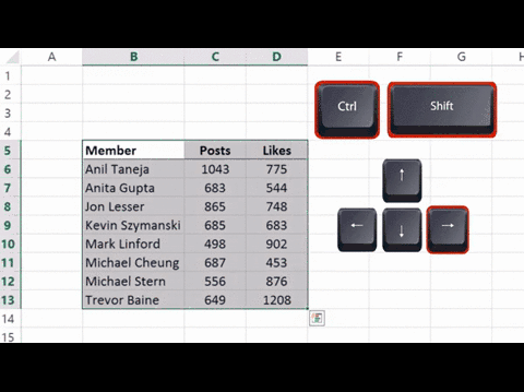 用“Ctrl + Shift +方向鍵”能夠縱橫跨選單元格,從而選中你想要的區(qū)域。