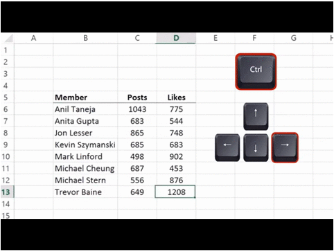 當(dāng)然,你也可以只按方向鍵,然后一格一格地移。但如果你想快速轉(zhuǎn)換單元格,在按方向鍵之前長(zhǎng)按“Ctrl”,瞬間能達(dá)到“鍵步如飛”的效果。