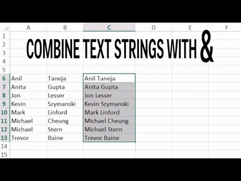 我們現(xiàn)在擁有一列姓和一列名,我們可以使用“&”符號(hào)來(lái)創(chuàng)建一列合并姓和名的數(shù)據(jù)。在Excel中,“&”指將兩個(gè)或兩個(gè)以上的文本合并。別忘了在姓和名中間鍵入一個(gè)空格。你的函數(shù)應(yīng)該看上去是這個(gè)格式的 =[First Name]&" "&[Last Name]。