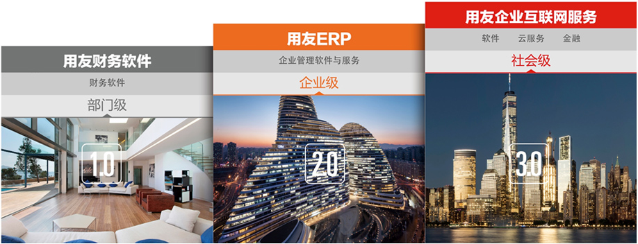 用友1988年從財務(wù)軟件起航,通過普及財務(wù)軟件的應(yīng)用,推動了中國企業(yè)的會計電算化,是用友發(fā)展的1.0時代;1998年開始進(jìn)入以ERP為代表的企業(yè)管理軟件與服務(wù)領(lǐng)域,通過普及ERP支撐了中國眾多企業(yè)的信息化建設(shè),推動了企業(yè)的管理進(jìn)步,是用友發(fā)展的2.0時代?,F(xiàn)在,用友基于移動互聯(lián)網(wǎng)、云計算、大數(shù)據(jù)和人工智能的新一代企業(yè)計算技術(shù),形成了以“軟件、云服務(wù)、金融”為三大核心業(yè)務(wù)的企業(yè)互聯(lián)網(wǎng)服務(wù),業(yè)務(wù)領(lǐng)域從之前的企業(yè)管理擴展到業(yè)務(wù)運營和企業(yè)金融,服務(wù)層級從企業(yè)級走向社會級,這開啟了用友發(fā)展的3.0時代。