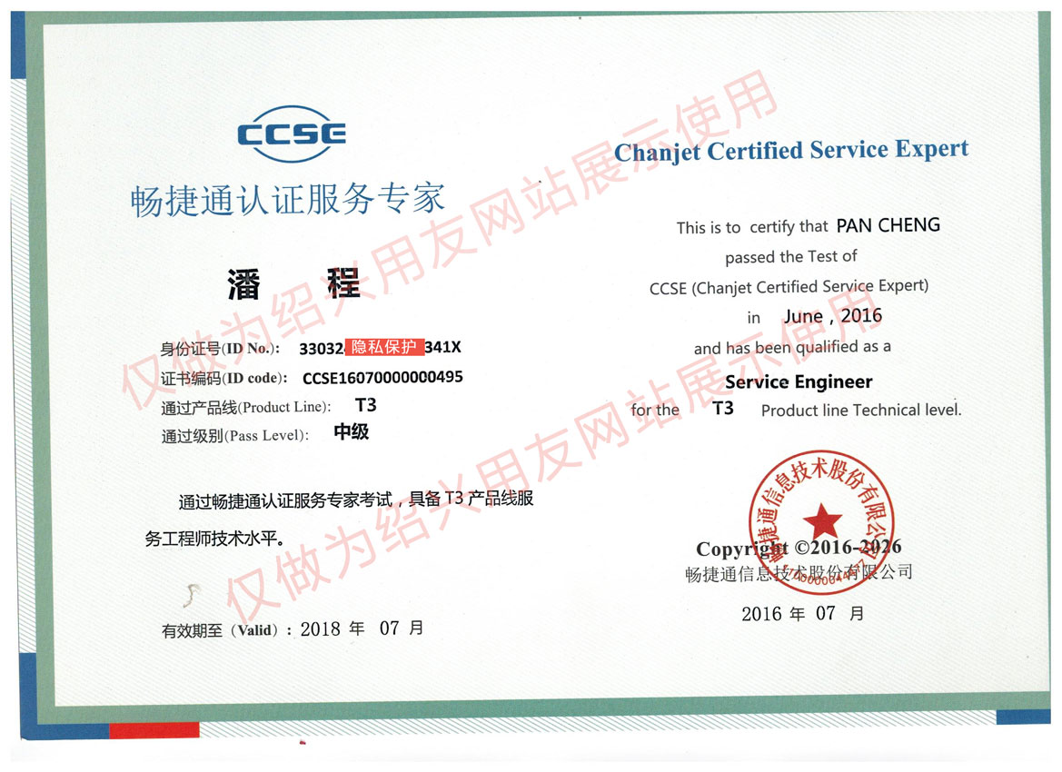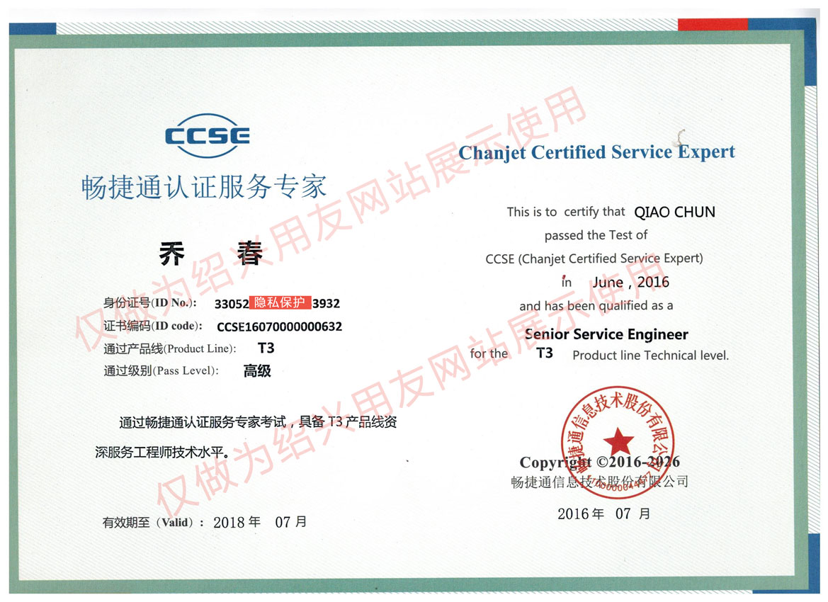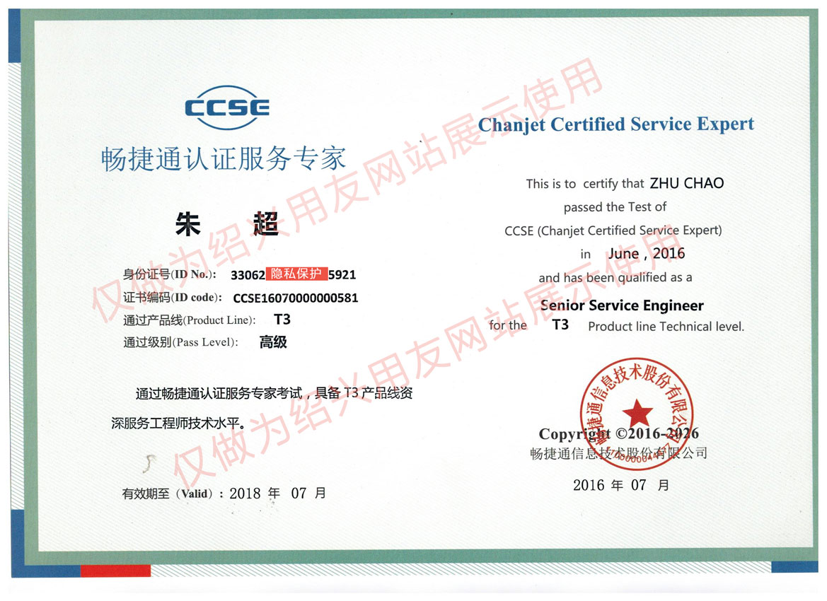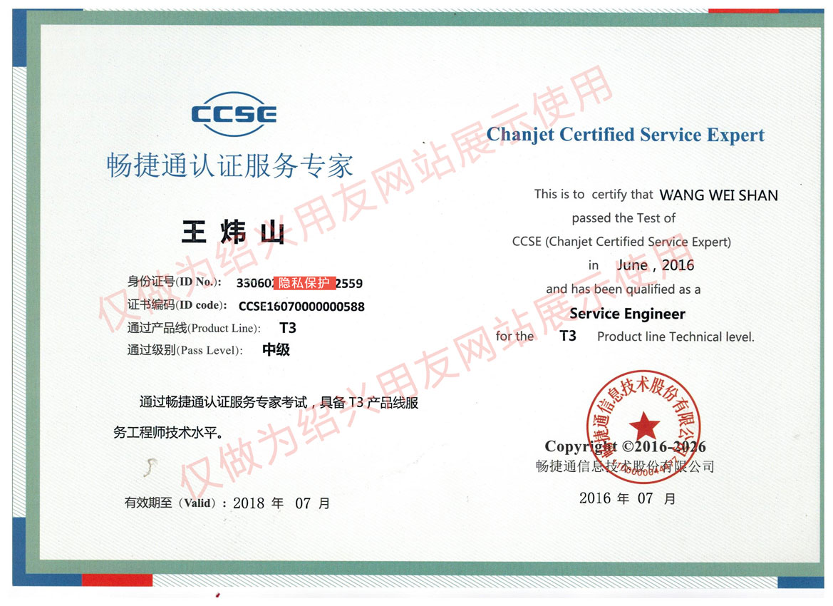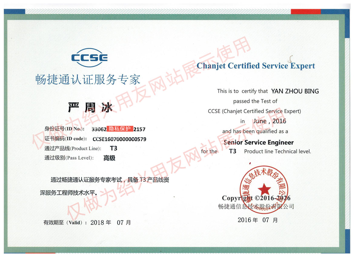 2016年通過暢捷通CCSE服務認證證書的精英團隊成員!